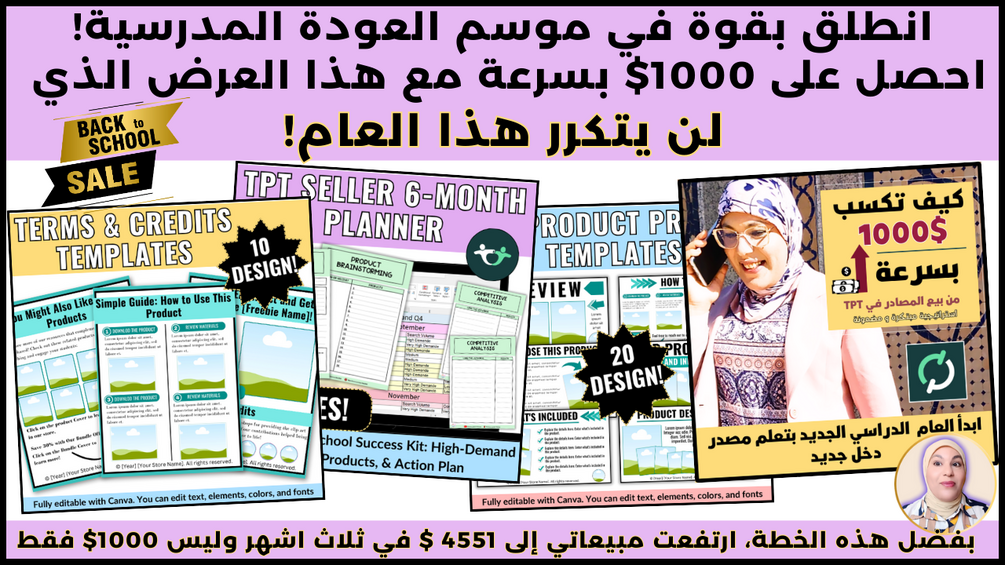 ستحصل على عرض كامل يشمل كورس وخطة عمل وقوالب كانفا جاهزة وملف نيشات للحصول على الف دولار و اكثر خلال موسم الدخول المدرسي في موقع TPT