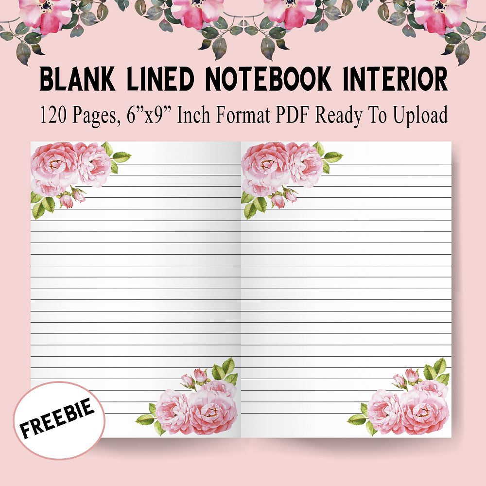 - 120 Page Lined Paper With Flowers PDF Document That Is Ready To Upload To Amazon KDP As A No Content Book Interior.