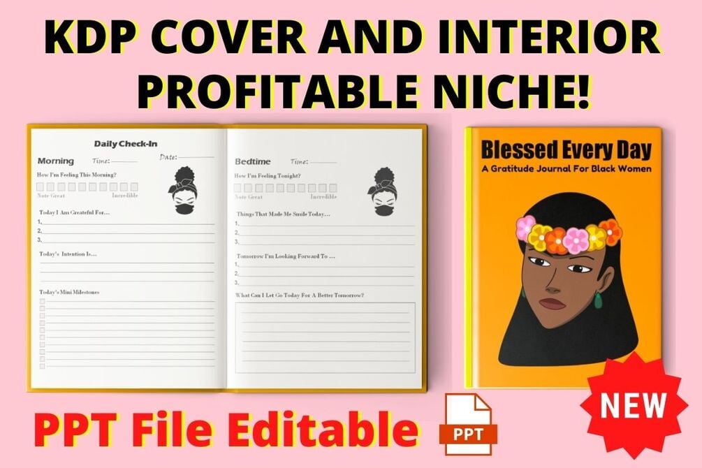 Blessed Everyday A gratitude Journal For Black Women, KDP Interior And Cover Editable With Powerpoint (Profitable Niche KDP).