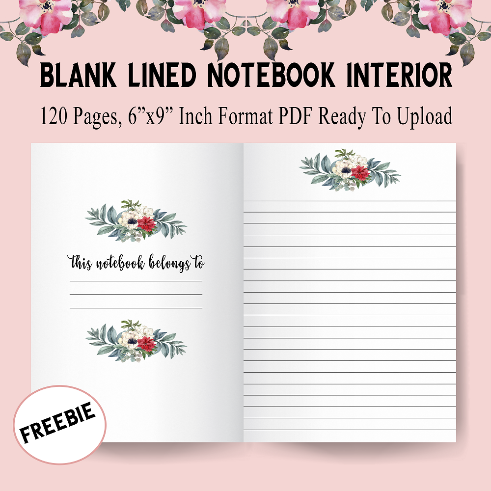 - 120 Page Lined Paper With Flowers PDF Document That Is Ready To Upload To Amazon KDP As A No Content Book Interior.